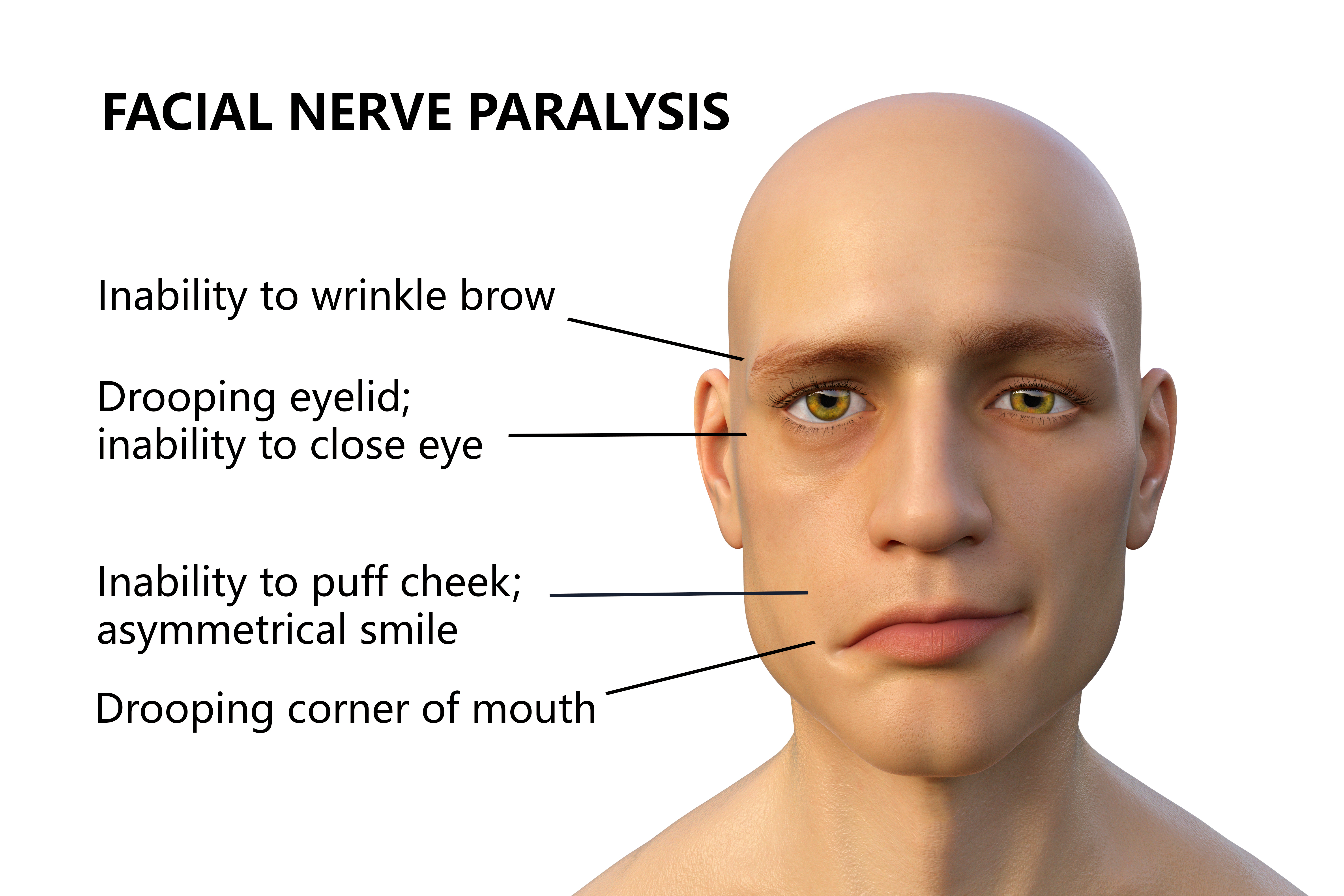 Facial palsy is caused by impairment of the facial nerve, resulting in temporary muscle weakness or paralysis on one side of the face, affecting approximately 1 in 60 people worldwide during their lifetime. Less commonly, paralysis of the face may be caused by tumour, infection or stroke.